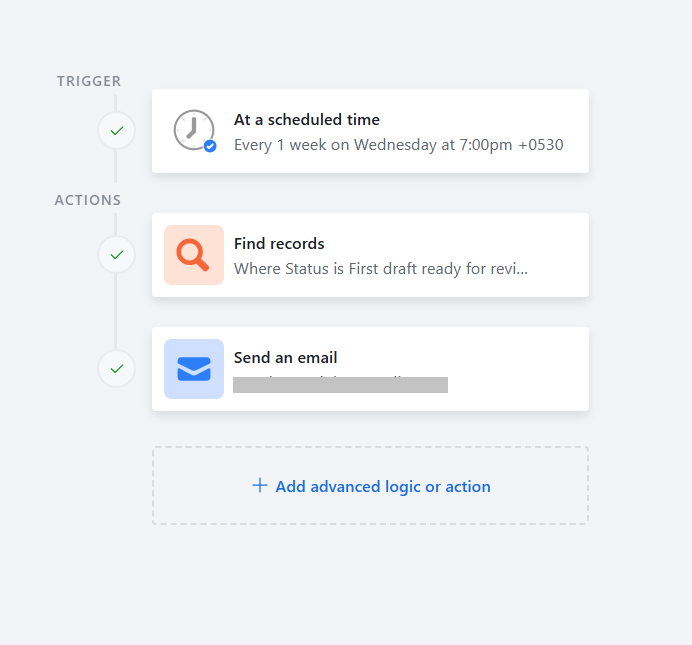 Airtable has a built-in automation feature that can send emails. Follow these steps: